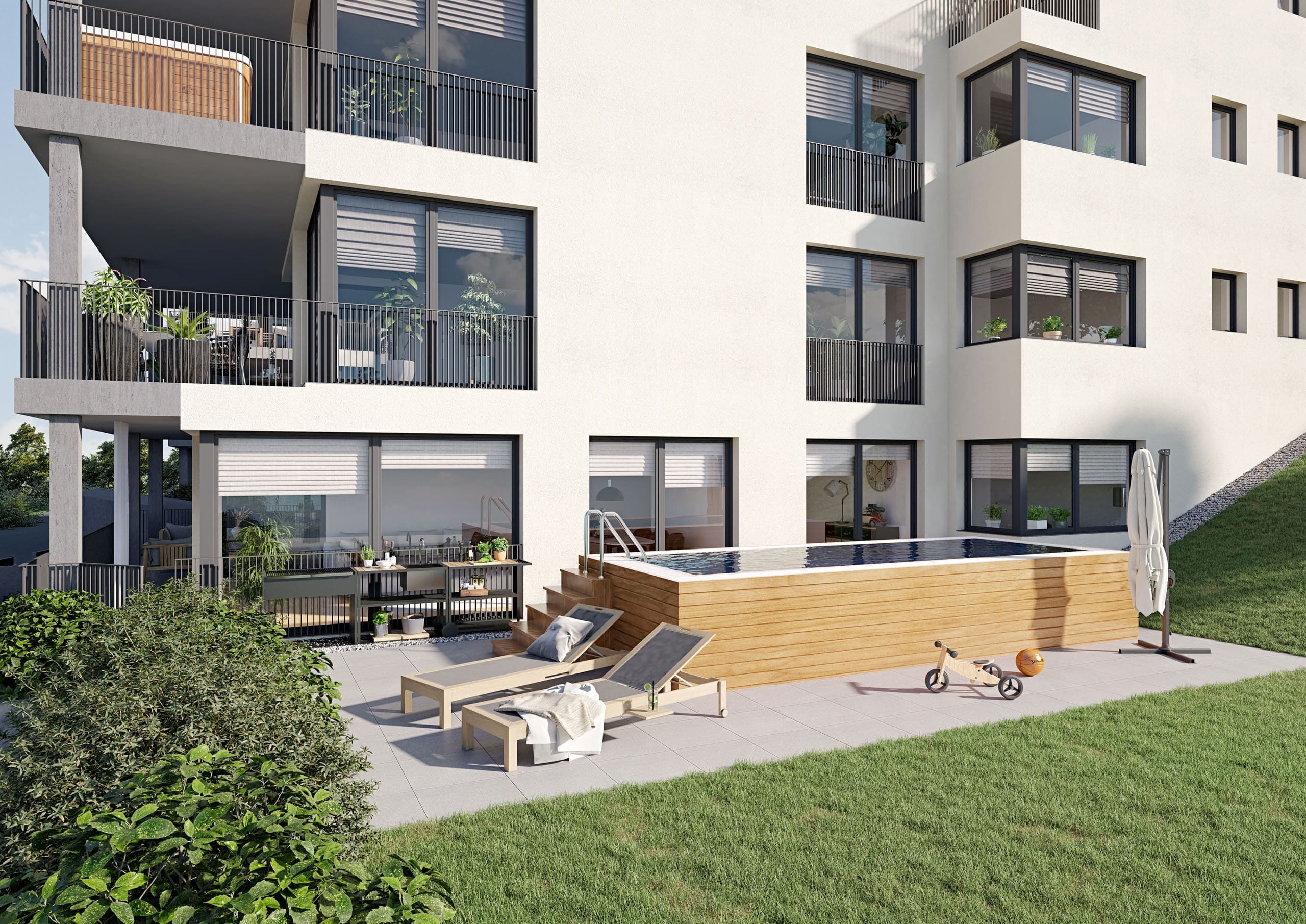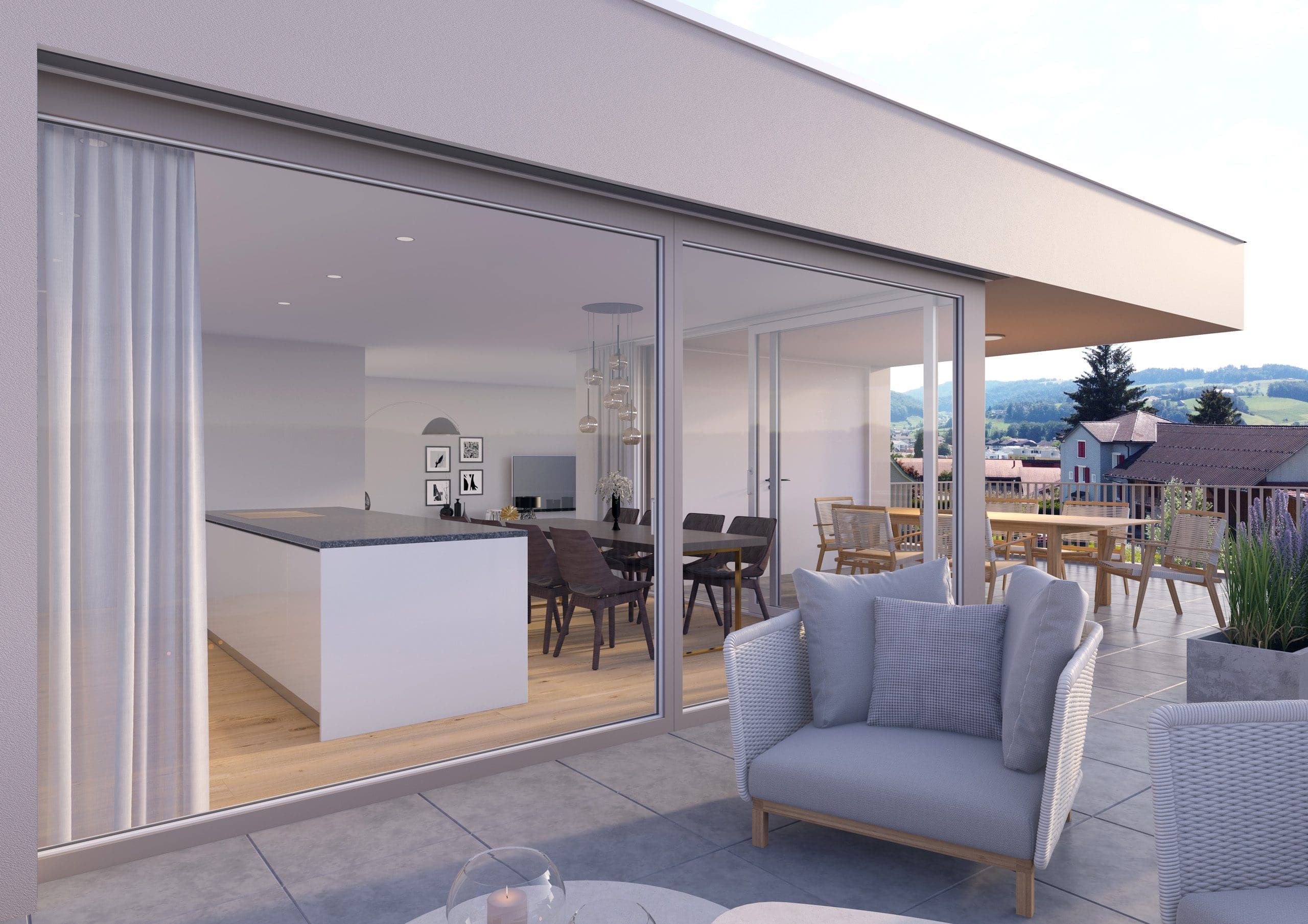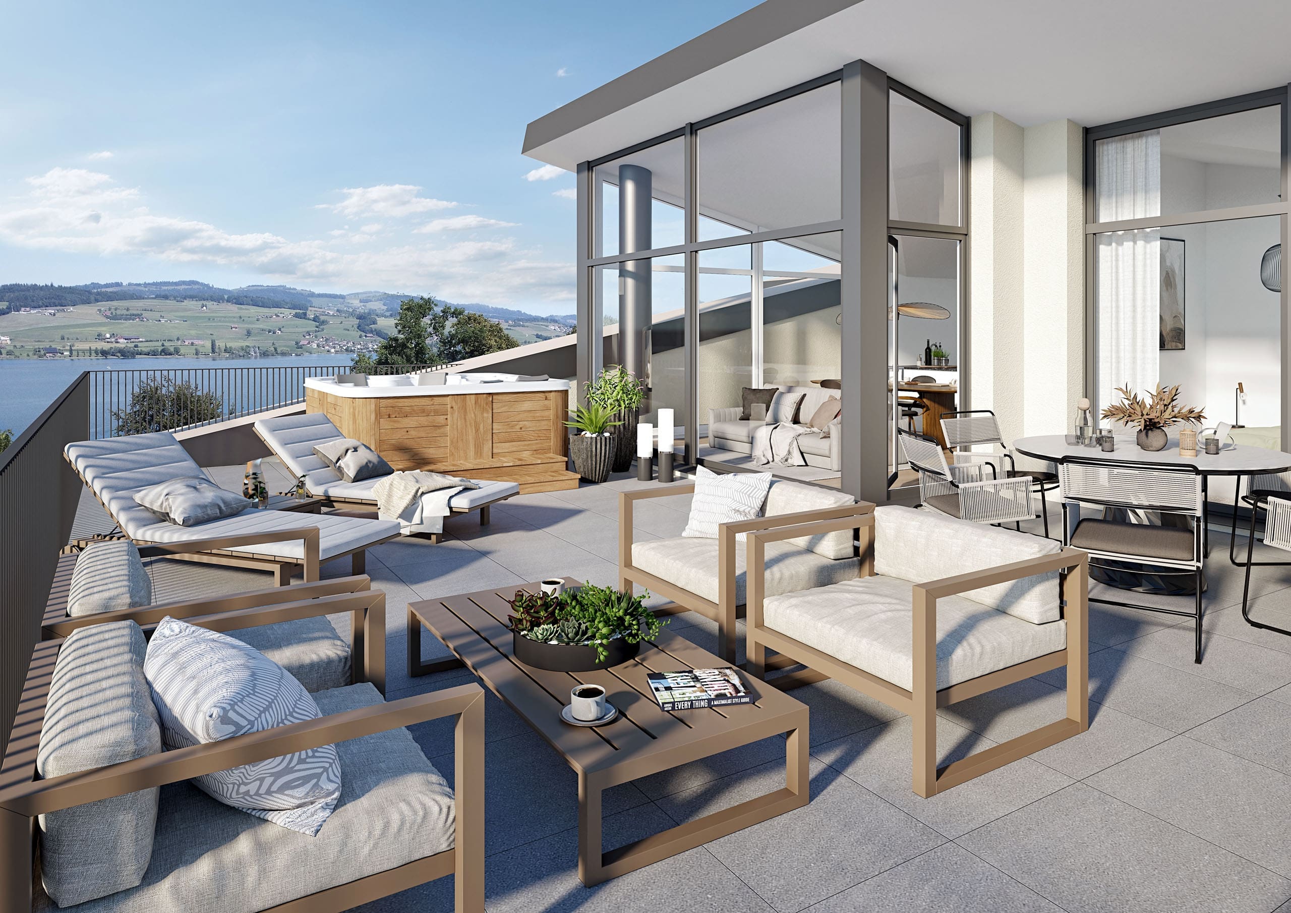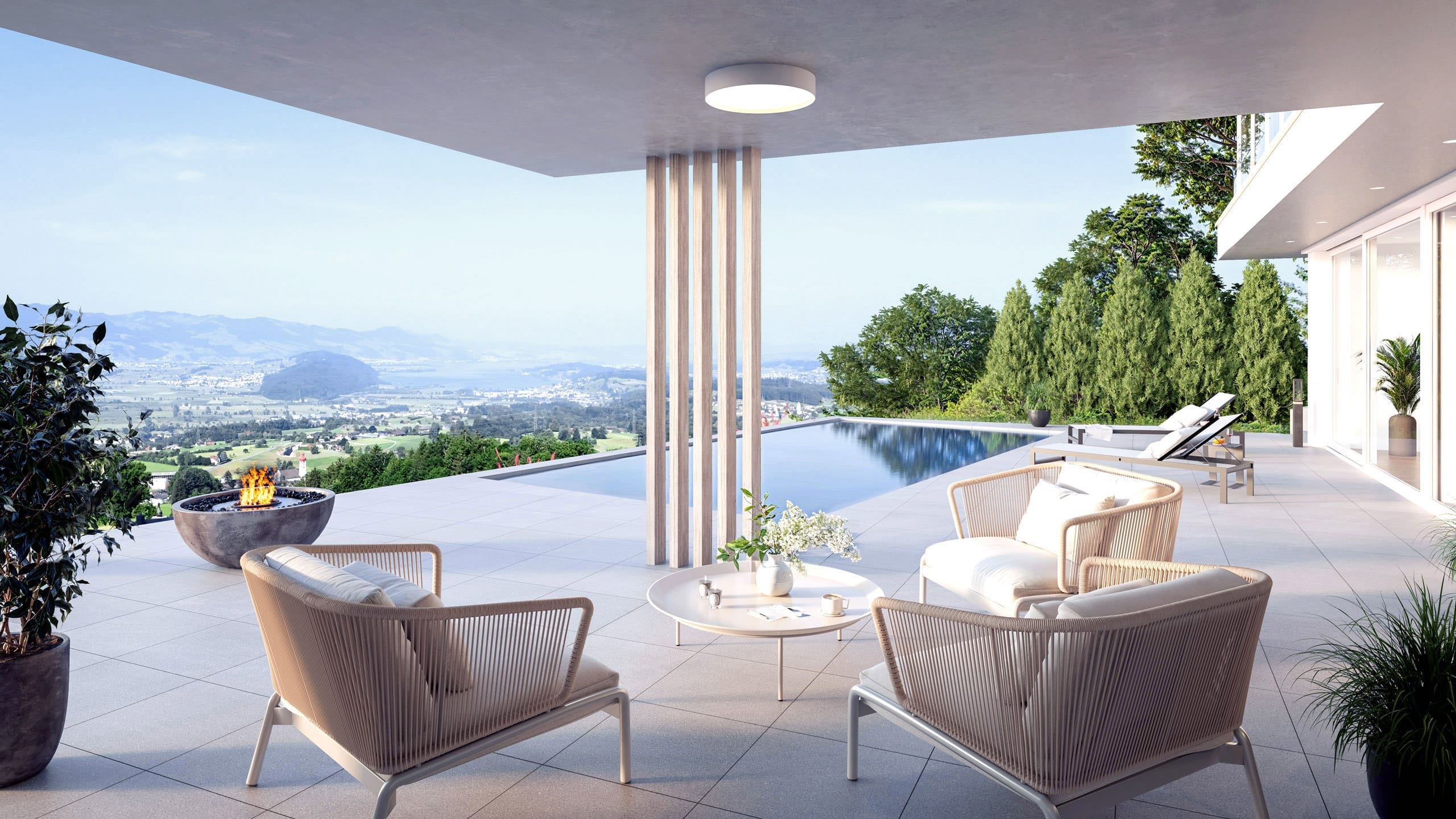 Auf unserer Homepage www.3d-visualisierungen.ch finden Sie noch weitere Referenzbilder. Siehe bitte auch unten: Visualisierungen > Galerie > Terrassenansicht