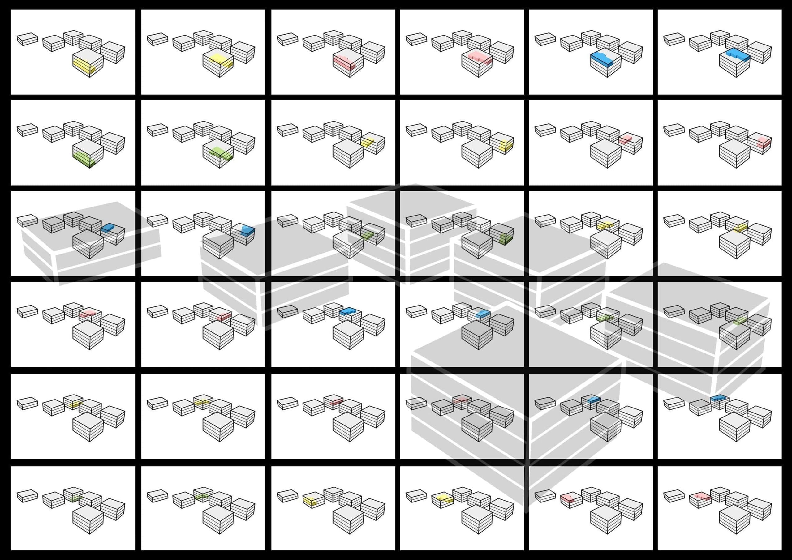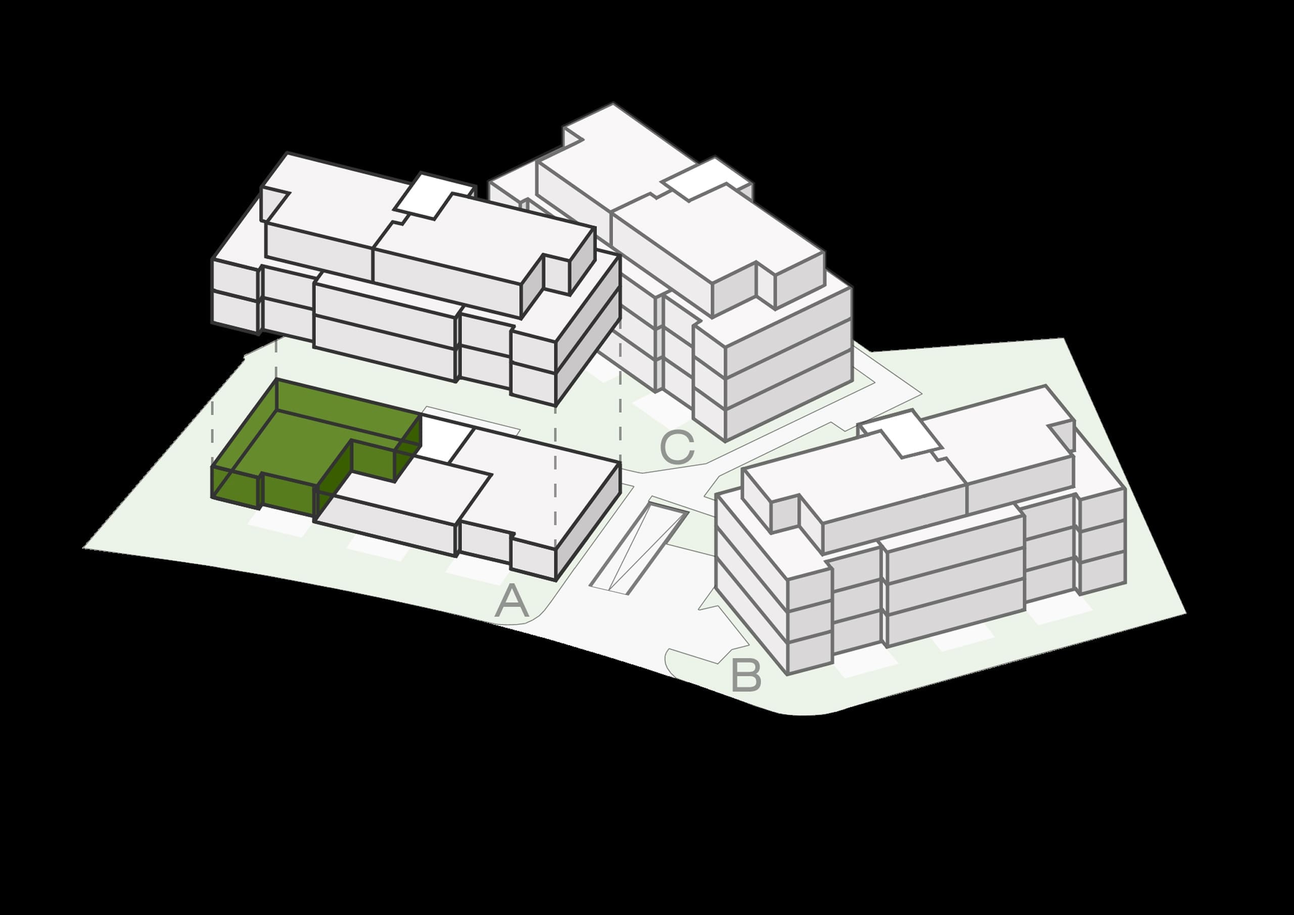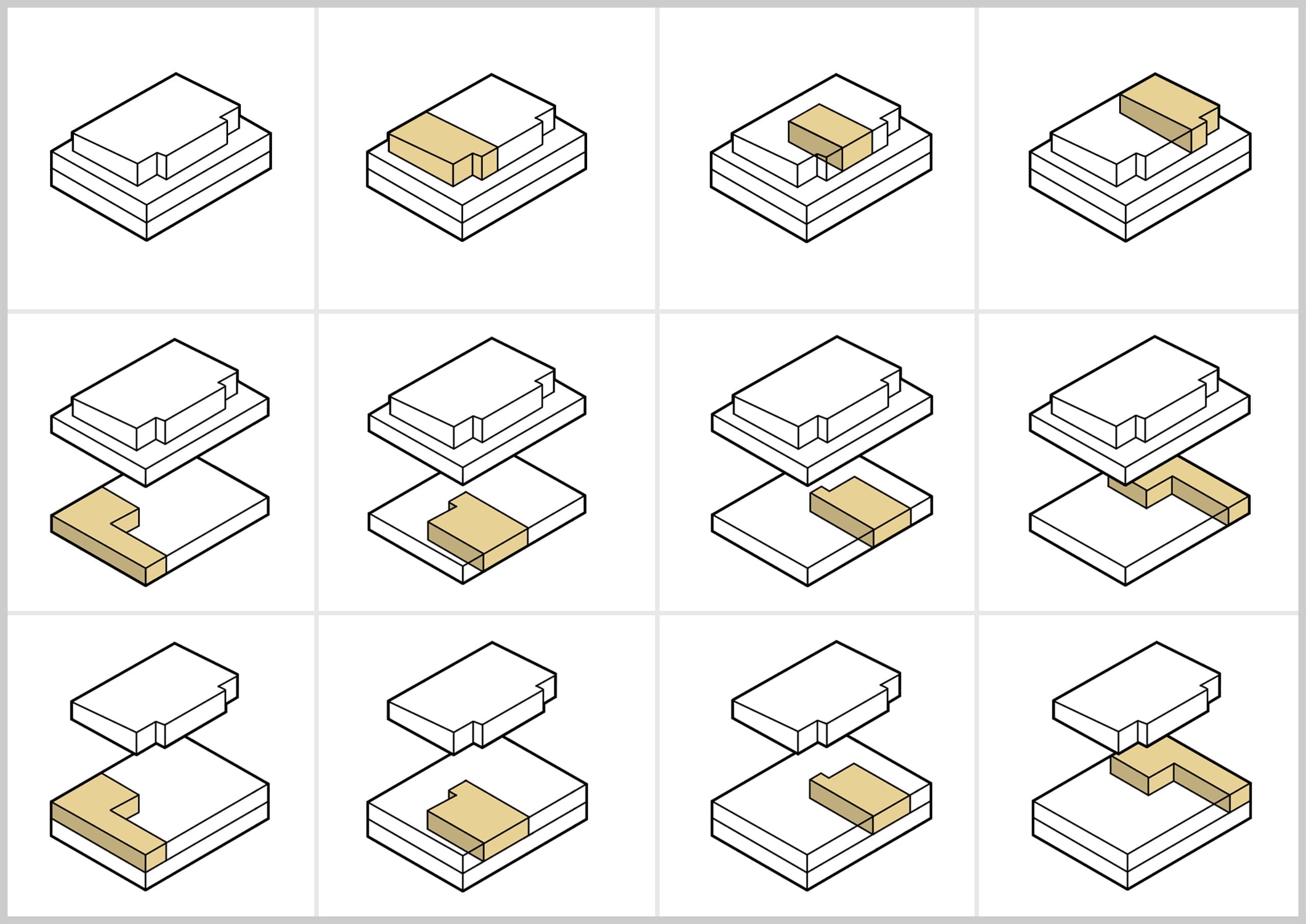 - Offene Isometrien: Die einzelnen Geschosse werden leicht versetzt dargestellt, sodass die Struktur der ausgewählten Wohnung klar ersichtlich wird. Besonders hilfreich, um Wohnungen in höheren Etagen hervorzuheben.