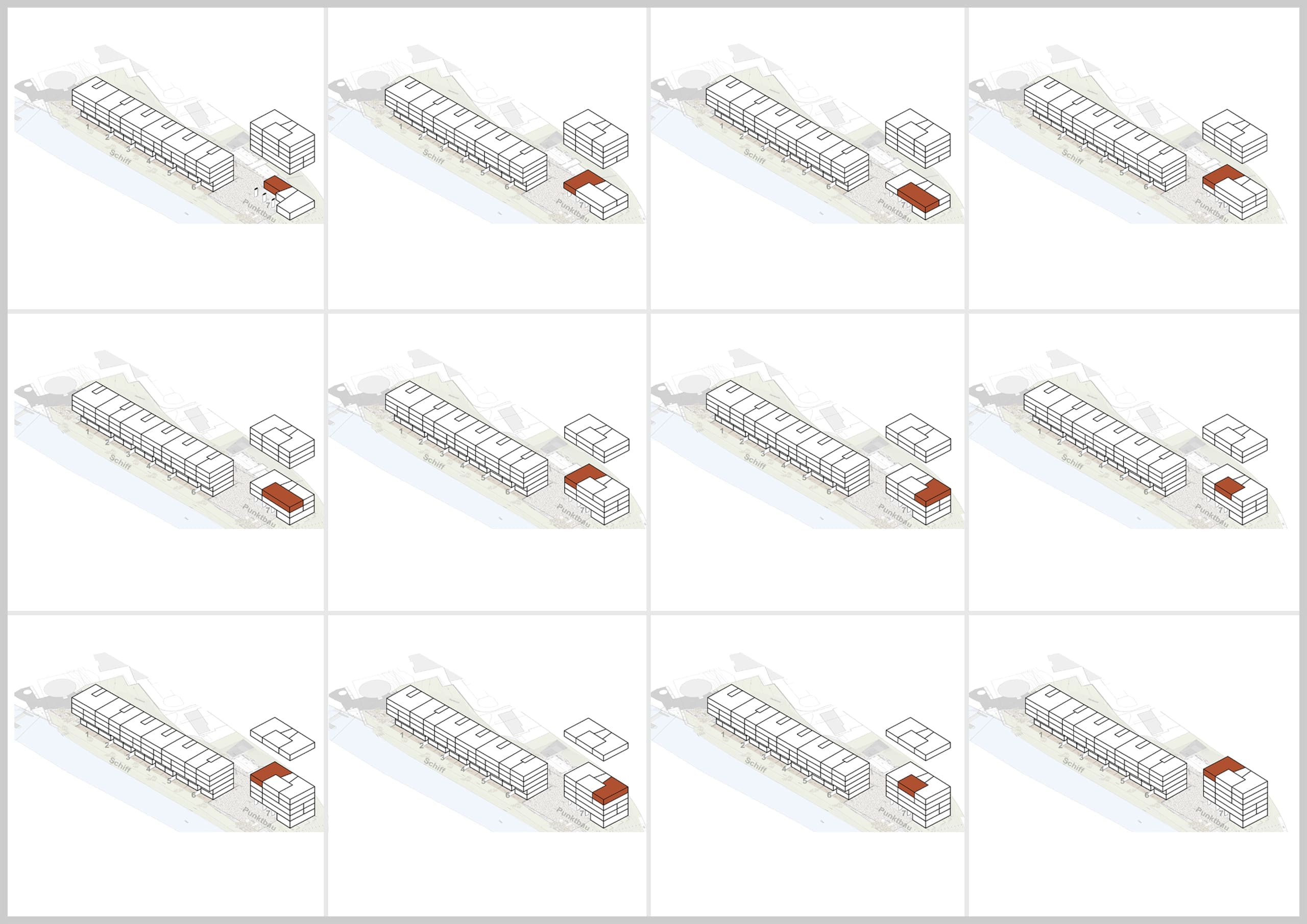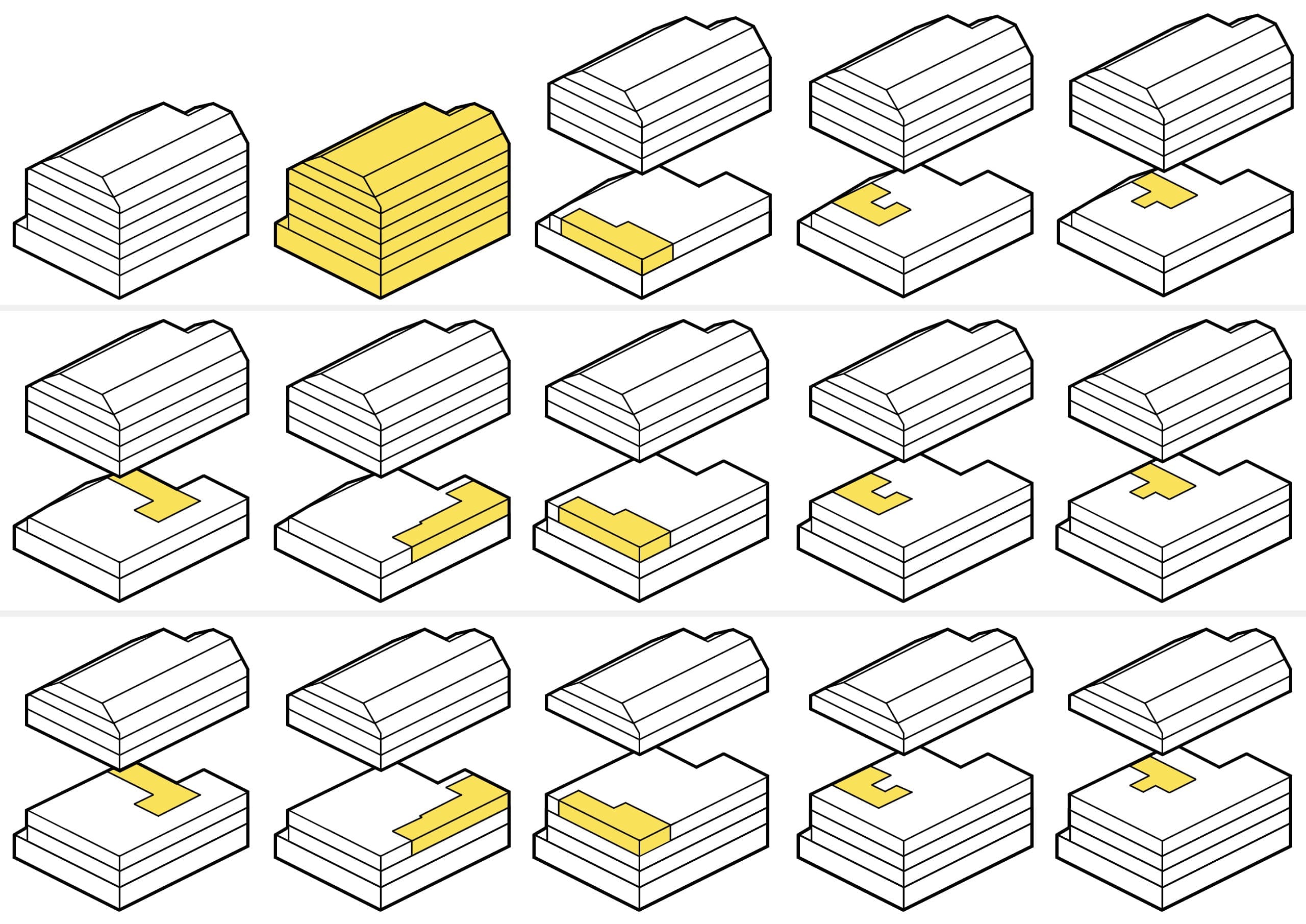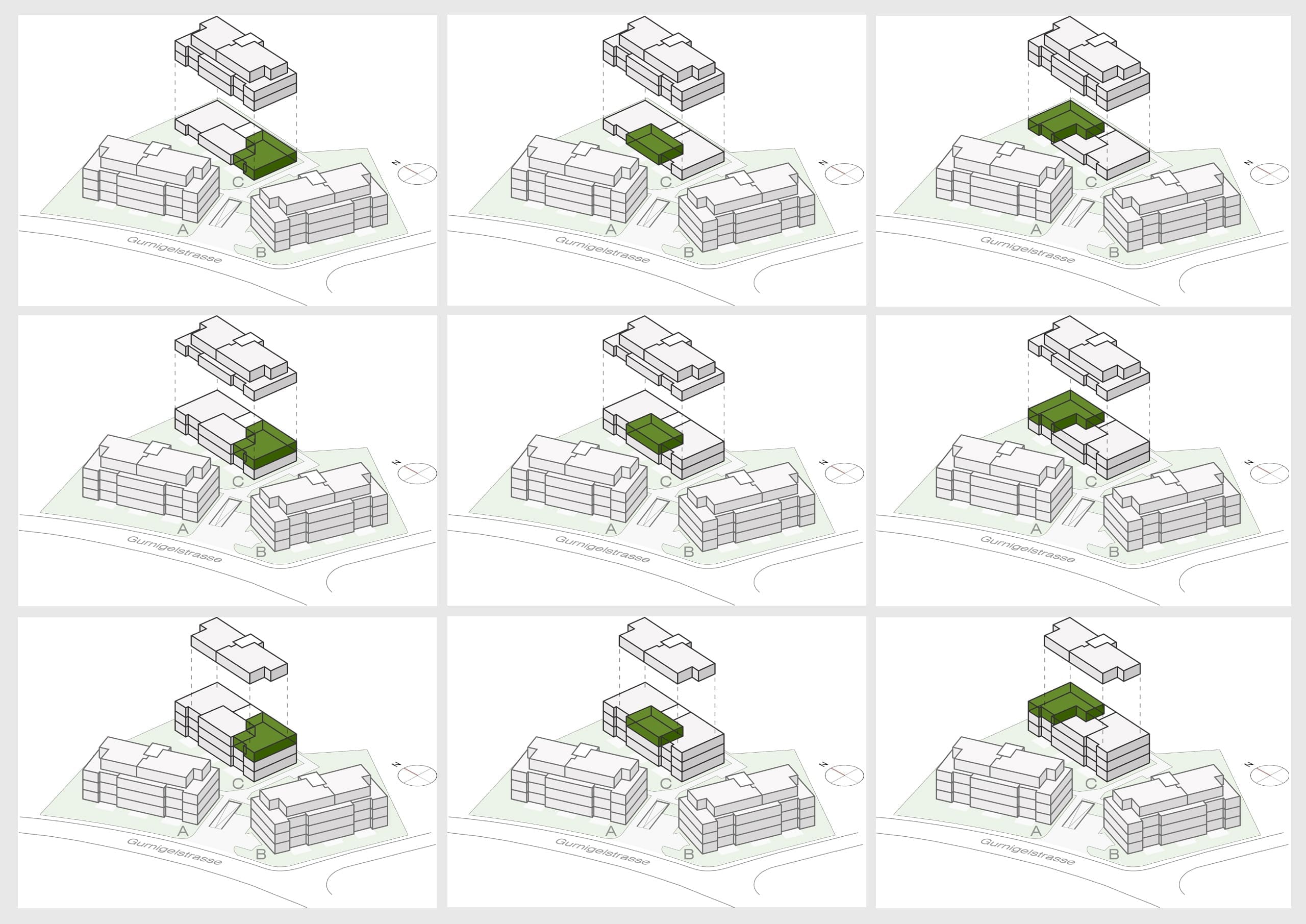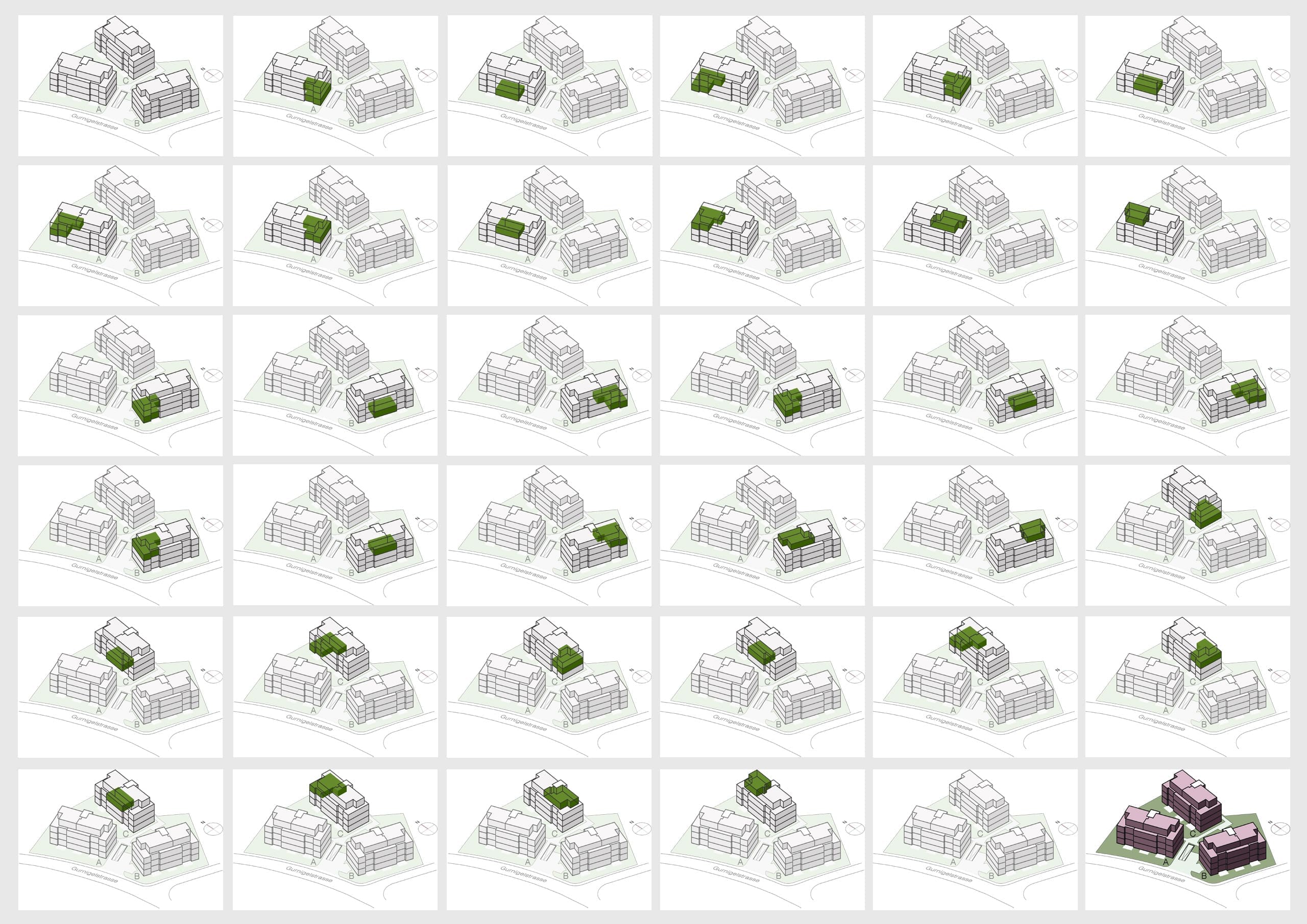 - Offene Isometrien: Die einzelnen Geschosse werden leicht versetzt dargestellt, sodass die Struktur der ausgewählten Wohnung klar ersichtlich wird. Besonders hilfreich, um Wohnungen in höheren Etagen hervorzuheben.