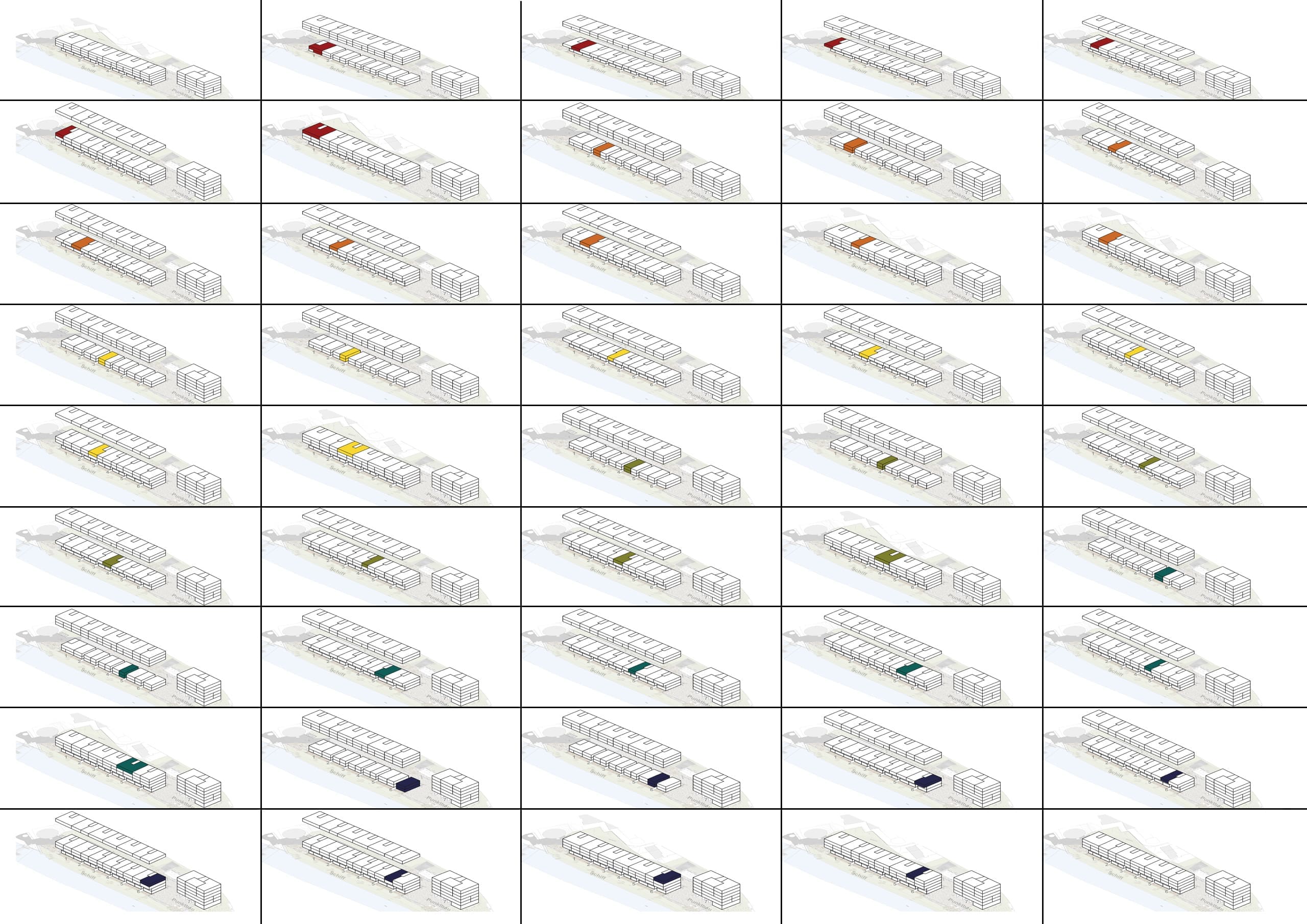 - Geschlossene Isometrien: Das gesamte Gebäude wird kompakt dargestellt, während selektierte Wohnungen durch Farbakzente hervorgehoben werden. Dies eignet sich optimal für tabellarische Wohnungsübersichten mit interaktiven Funktionen.